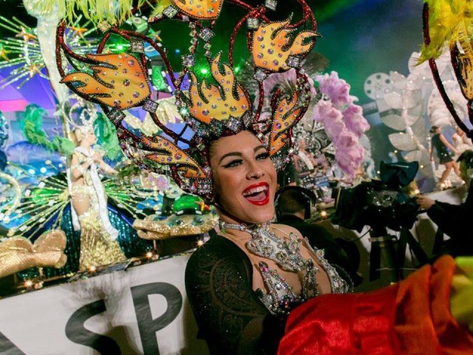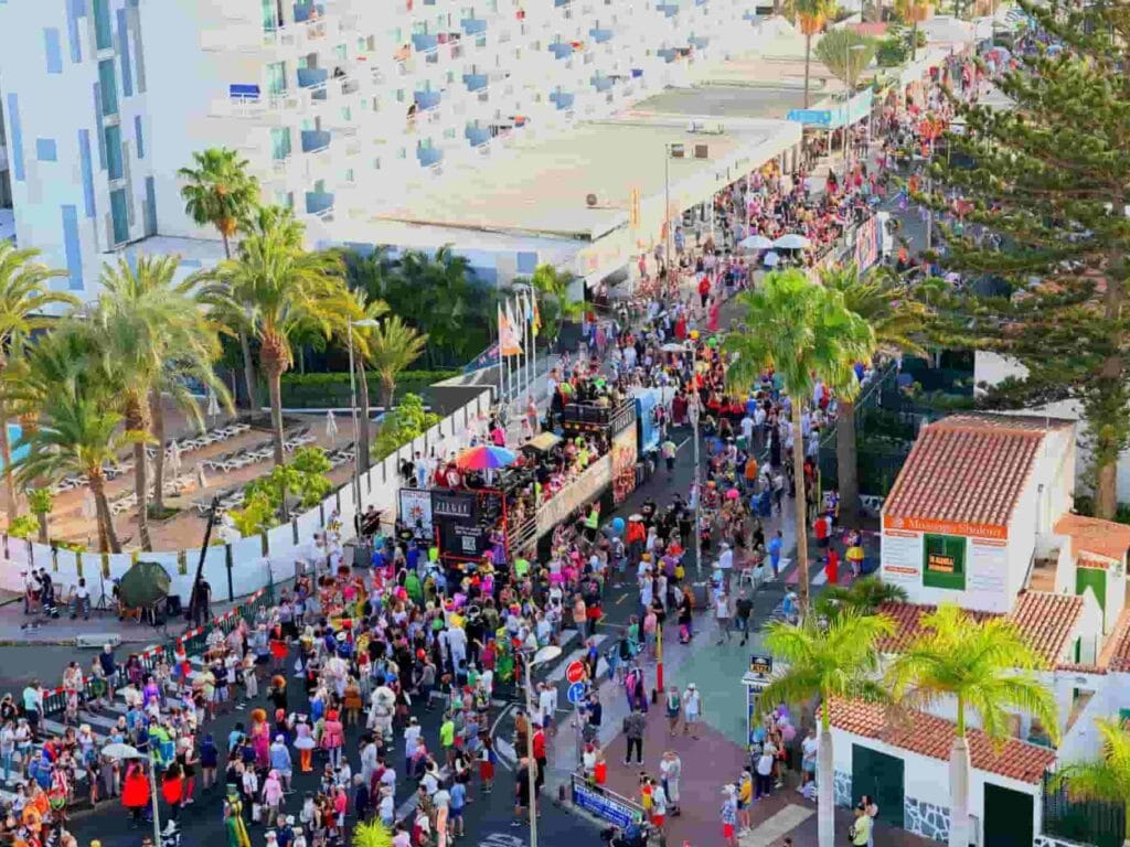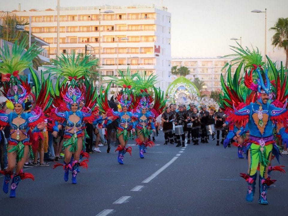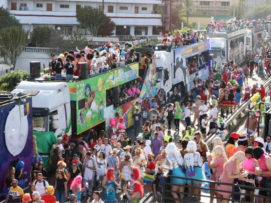 The main parade runs through the main tourist avenues, filling Maspalomas and Playa del Inglés with floats, troupes and thousands of people in costume.